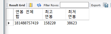 [문제 2] 직원들 연봉 전체 합, 최고 연봉, 최저 연봉